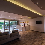 Πλούσιο πρωινό σερβίρεται καθημερινά στην αίθουσα που βρίσκεται στην παραλία.