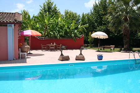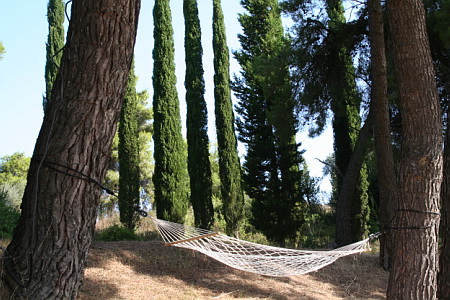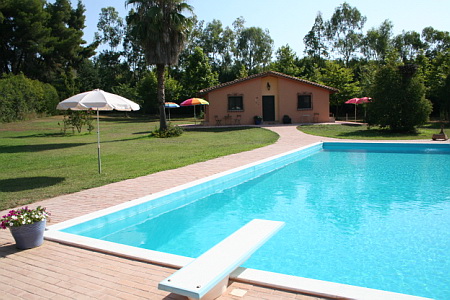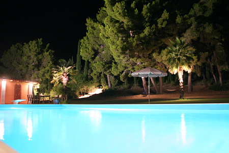 Terry land is an idyllic estate in a lush valley 10 minutes from the city of Amaliada and 5 minutes from Kardamas village in the prefecture of Ilia, Peloponnese. The lodgings are surrounded by a vast area of groomed lawn and numerous evergreen trees such as pines, cypresses, olives and willows. All houses are interconnected by a paved patio, in the center of which there is a large swimming pool 6x15 meters long.